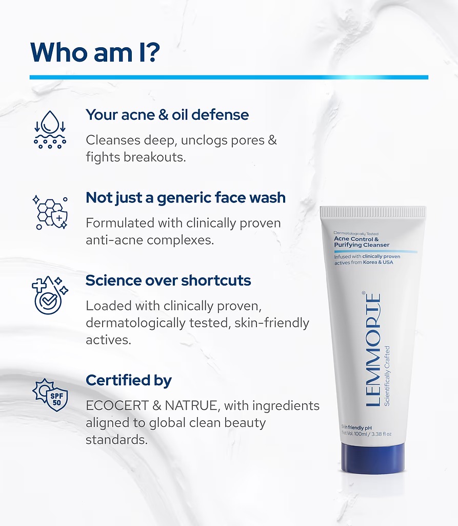 A: Absolutely. The cleanser combines botanical and marine-derived ingredients to unclog pores, control excess oil, and reduce acne-causing bacteria, making it the best cleanser for acne-prone skin. Developed with data-backed safety, it works holistically to manage acne at its source.